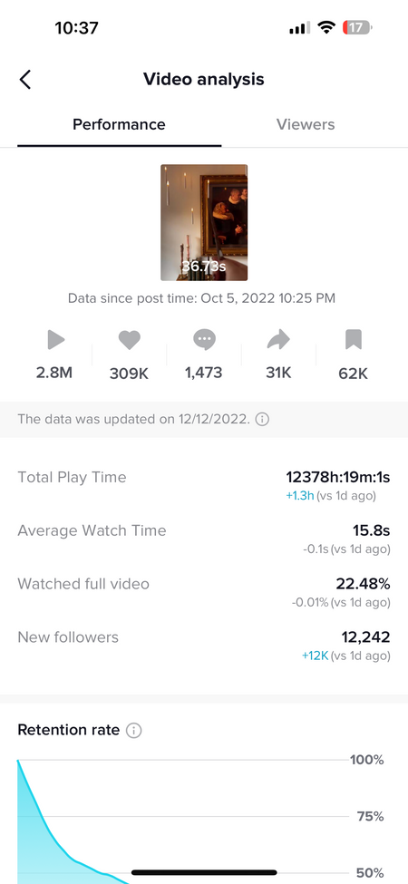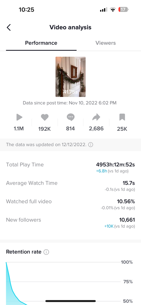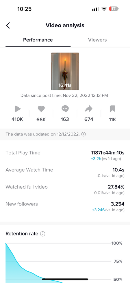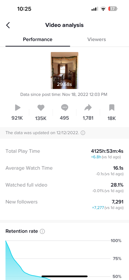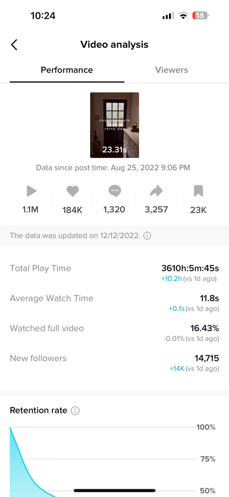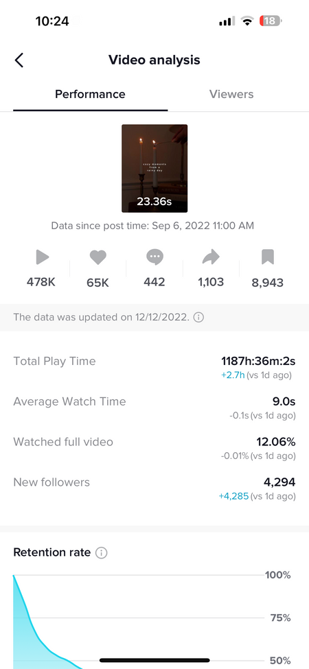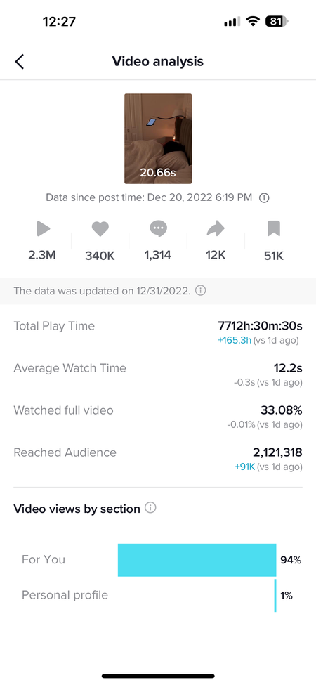 All analytics shown are from my TikTok and Instagram accounts and solely reflect organic performance from my original content